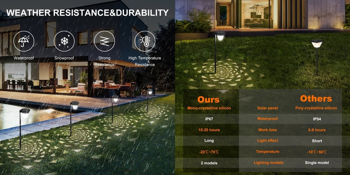شمسيأضواء المناظر الطبيعية مجهز ببطارية مقاومة لدرجات الحرارة العالية.يمكن أن تعمل بشكل جيد في درجة حرارة -20 إلى +70